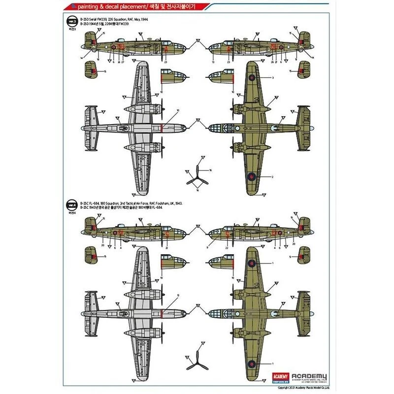 Academy 12339 RAF B-25C/D “European Theatre” Model Kit 1:48 Scale