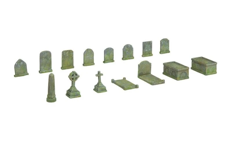 A selection of gravestones and other monuments ideal for modelling a graveyard. Offering the modeller an extensive range of building styles from which to choose, the Skaledale range comprises a collection of detailed resin buildings.