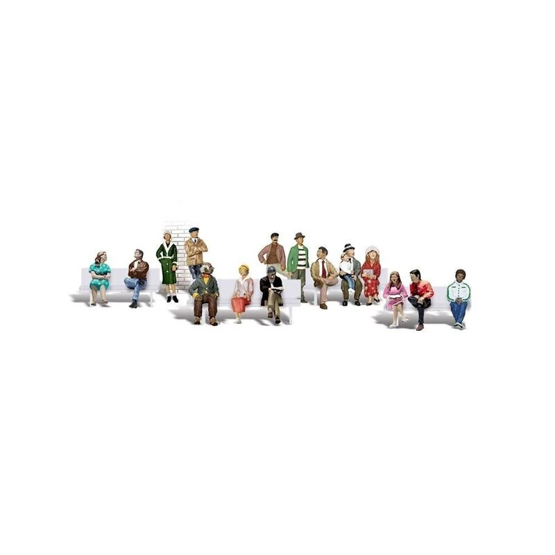 The name says it all. Some sit, some stand, but all wait for a train or bus, with their bags packed. Benches not included. Set contains 16 pieces. Colors may vary from actual product.